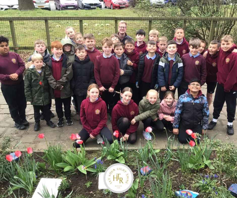 Y5/6LD decided to raise peopleโs spirits by enriching our local shared spaces.ย We focussed on our community garden, the quiet area and the area outside the building, near the field.ย We spent time tidying the areas and planting new flowers to make them look even better.ย We also did some general tidying to those areas so that we could let our lights shine for others.